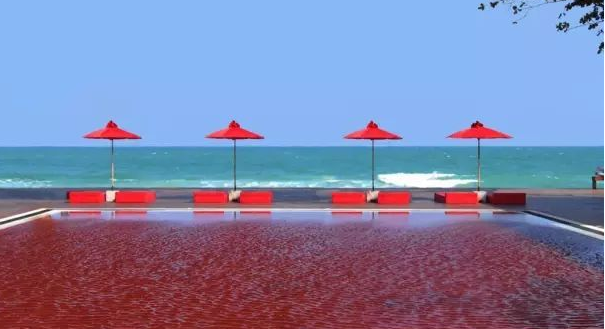 這里被稱為蘇梅島上的紅寶石,因?yàn)榫频昀锛t色的泳池非常令人驚艷。除此之外,這里有整個(gè)泰國(guó)最多的藏書(shū),外面是熱鬧繁華,酒店里便是安靜文雅,入世而不入流。